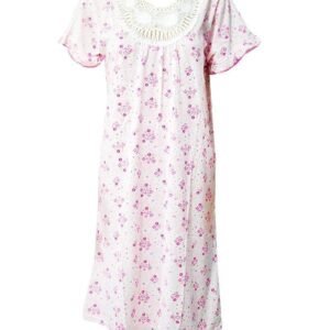 Stylish White Long Nighty With Pink Flower Print 111.9