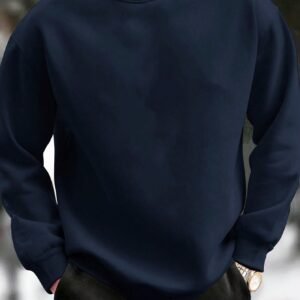 Men’s Loose Fit Round Neck Sweatshirt – Solid Color Casual Style